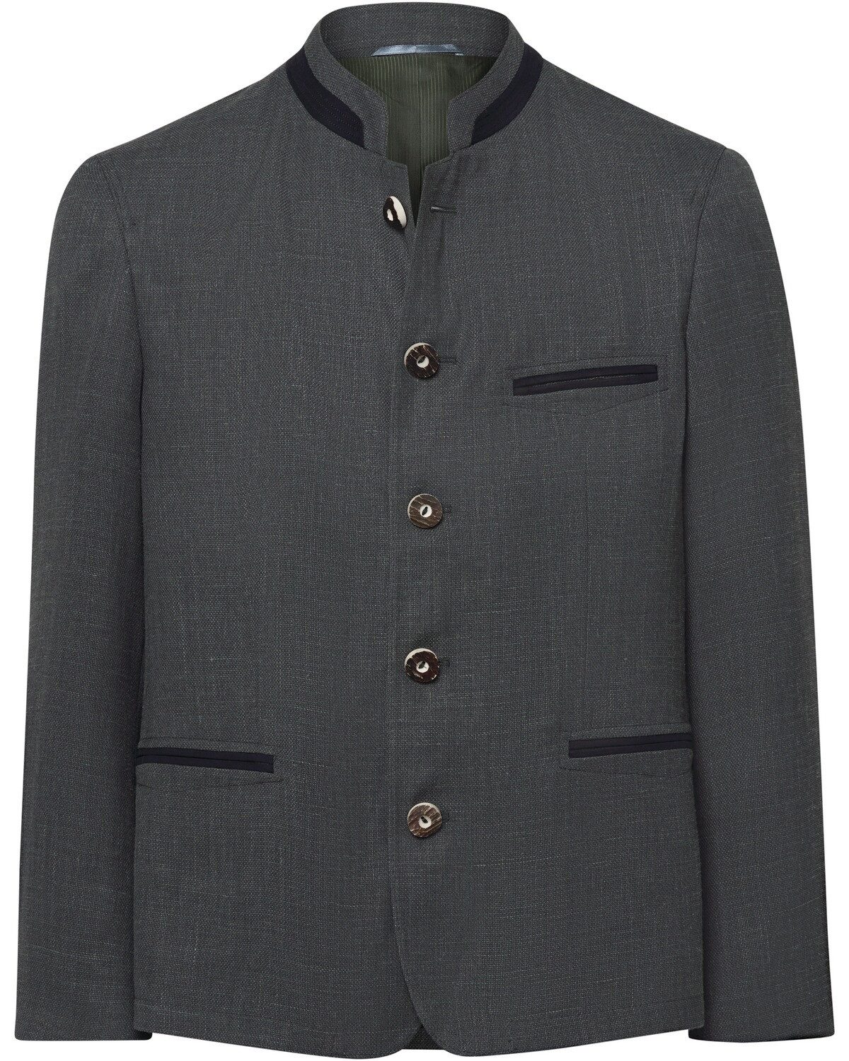 Der Herren Janker Kaprun von Lodenfrey vereint zeitlose Eleganz mit modernem Komfort und ist aus einem leichten Materialmix mit Wolle und Leinen gefertigt. Die feine Struktur des Stoffes verleiht dem Janker nicht nur eine ansprechende Optik, sondern sorgt auch für ein angenehmes Tragegefühl. Der gerade Schnitt bietet eine lässige Passform, die sowohl im Alltag als auch bei besonderen Anlässen überzeugt. Der Stehkragen des Jankers ist mit einem dezenten Kontrastbesatz versehen, der dem Design eine subtile Raffinesse verleiht. Die durchgehende Knopfleiste und die drei Paspeltaschen bieten praktische Details, während die dekorativen Knöpfe an den Ärmelenden für einen stilvollen Akzent sorgen. Diese Kombination aus Funktionalität und Design macht den Janker zu einem vielseitigen Kleidungsstück für modebewusste Herren. Der Rücken des Jankers ist mit einem Gurt ausgestattet, der nicht nur für eine optimale Passform sorgt, sondern auch das Gesamtbild harmonisch abrundet. Ob in der Freizeit oder bei festlichen Anlässen, der Herren Janker Kaprun ist die ideale Wahl für alle, die Wert auf Qualität und Stil legen. Mit diesem Janker wird jedes Outfit zu einem echten Hingucker. Oberstoff: 55% Polyester, 35% Wolle, 10% Leinen; Futter: 52% Viskose, 48% Acetat. Dieser Artikel enthält nichttextile Teile tierischen Ursprungs.