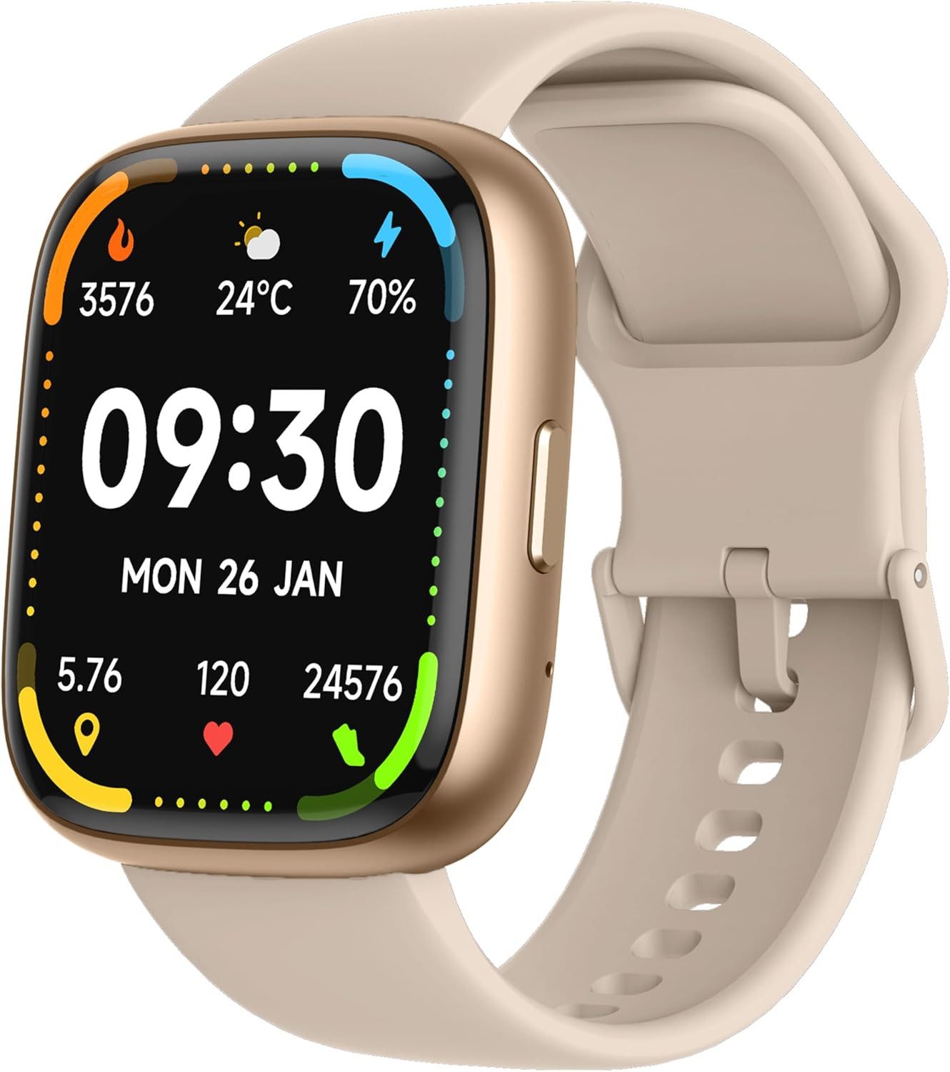 Die Smartwatch überwacht Herzfrequenz, Schlaf und Aktivität rund um die Uhr. Mit Schrittzähler, Kalorienverbrauch und Sportmodi unterstützt sie ein aktives Leben.