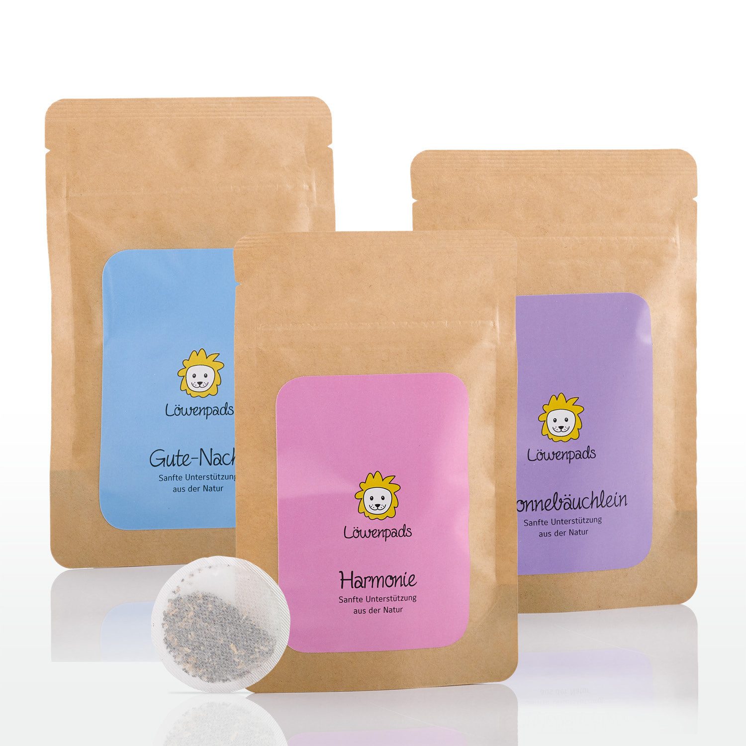 Das 3er Set der Kräuterpads Nachfüllpackungen enthält 3 wieder verschließbare Nachfüllpackungen mit je 5 Kräuterpads von den Sorten Gute-Nacht, Harmonie und Wonnebäuchlein. Все Sorten sind für eine Anwendung ab Geburt geeignet und unterstützen bei Schlafproblemen (Gute-Nacht), bei innerer Anspannung und Zahnen (Harmonie) sowie einem entspannten Bauchgefühl (Wonnebäuchlein) auf natürliche Weise. Die drei Kräuterpad-Sorten sind echte Must-Haves für die häufigen Kinderwehwehchen und eine echte Bereicherung Deiner Hausapotheke. In Kombination mit dem Löwenkind Musselin-Tuch mit integrierter Padtasche ist die Anwendung ganz einfach und die Wirkung der Kräuter wird durch die Körperwärme verstärkt.
