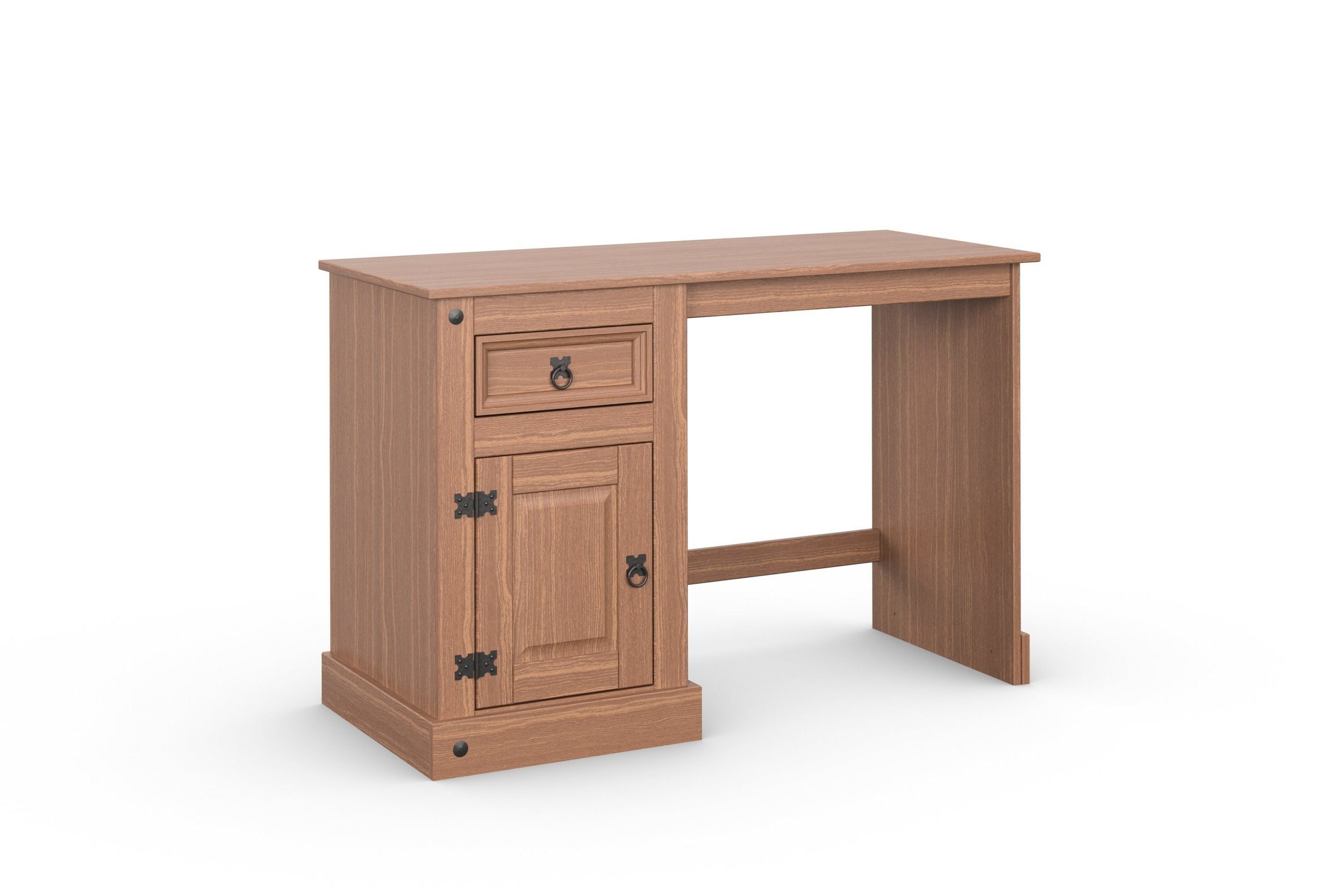 Dieser Schreibtisch Benton wird das Richtige für dich sein, wenn du im Homeoffice arbeitest oder deine Freizeit gerne am PC verbringst. Mit dem variablen Einlegeboden hast du die Möglichkeit auf zusätzliche Ablagefläche. Belastbar ist dein neues Möbelstück mit bis zu 50 Kilogramm. Es ist eine richtige Einrichtung für produktives Arbeiten In einem gut eingerichteten Home-Office darf natürlich ergänzend dazu ein ergonomischer Bürostuhl und die richtige Beleuchtung nicht fehlen. Eine Schreibtischlampe sorgt für ausreichend Licht und ist dabei auch noch ein schönes Accessoire. Auch sollten Ablagemöglichkeiten nicht fehlen, um Ordnung zu behalten. Praktische Rollcontainer oder Schränkchen bieten ausreichend Platz für deine Unterlagen. Der Tisch gehört zur Mexico Serie, die weitere Artikel in diesem Stil enthält. Auch so kannst du ein harmonisches Gesamtbild zaubern.