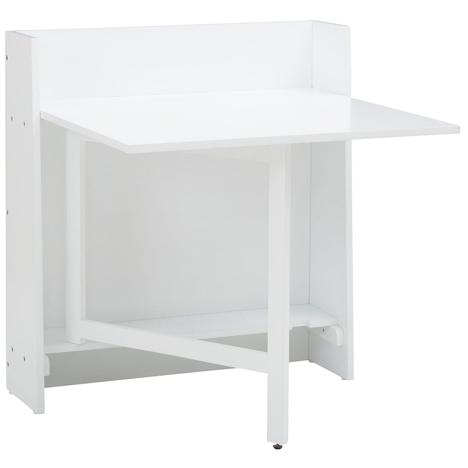 Klapptisch 84x80 cm aus MDF in weiß. Der vielseitige Klapptisch lässt sich platzsparend in Ihre Wohnung integrieren. Er besticht durch seinen modernen Landhausstil und harmoniert mit vielen Einrichtungen. Er überzeugt mit einem geradlinigen Design, das sich individuell kombinieren lässt. Sie können das Beistellmöbel für Ihre Essgruppe nutzen oder es als Bastel- oder Schreibtisch verwenden. Bei Nichtgebrauch kann das Untergestell zusammengeschoben und die Tischplatte heruntergeklappt werden. So entsteht ein schlankes Wandregal in Trapezform mit einer oberen Ablage für Bücher oder andere Dekorationsgegenstände. Der Beistelltisch ist aus FSC®-zertifizierten Holzwerkstoffen gefertigt. Pflegeleichte Oberflächen.