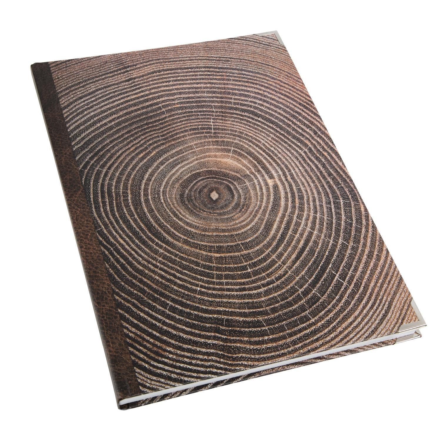 • Hochwertiges Notizbuch mit leeren Seiten zur freien Gestaltung. Detailliert gestaltetes Cover in Holz-Optik braun mit Jahresringen.