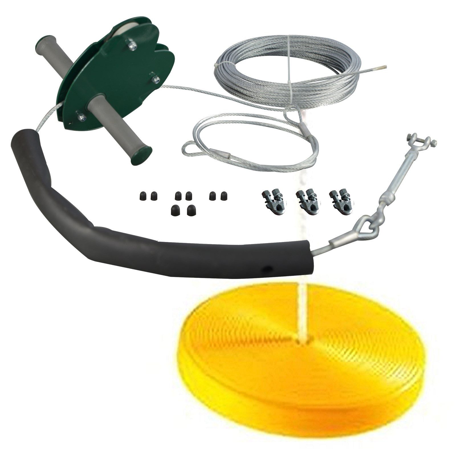 weicher Griff (gleitfest) Stahlkabel (Длина 25 m, Ø 4 mm) Kabelspanner aus verzinktem Stahl bis max. 70 kg belastbar mit Laufrollen aus Kunststoff Aussenteil aus Metall inkl. Tellerschaukel gelb