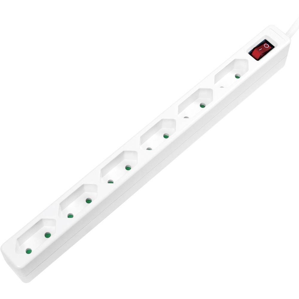 Eigenschaften | Anschluss-Leistung (Details): 3400 W · Betriebsspannung: 230 V · Einsatzort: Innenbereich · Herstellerfarbe: Weiß · Kabel-Typ nach DIN/VDE: H05VV-F 2G 1,0 mm² · Kabellänge: 1.50 m · Material: Kunststoff · Netzstecker-Typ: Schutzkontakt · Produktabmessung, Breite: 38 mm · Produktabmessung, Höhe: 25 mm · Produktabmessung, Длина: 296 mm · Schutzart: IP20 · Steckdosen-Anzahl: 6 · Steckdosenleisten-Besonderheiten: erhöhter Berührungsschutz |