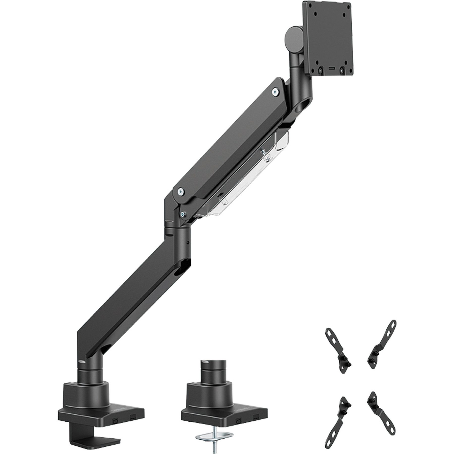 Der Ultra starke Schreibtisch-Monitorhalter ist für Monitore mit einer Размер von 17 bis 57" geeignet und kann sowohl flache (bis 27 kg) als auch gebogene Monitore (bis 22 kg) sicher halten. Extrem stabil und langlebig, verfügt er über eine VESA-kompatible Halterung, die eine einfache Installation ermöglicht. Bringen Sie Ihren Monitor in die benötigte Position, um Nacken- und Augenbelastungen zu reduzieren. Einfach am Schreibtisch befestigen ganz ohne bohren. Der Halter ist ebenso mit einem integrierten Kabelmanagement ausgestattet, um Kabel geordnet zu legen und wenn nötig leicht drauf zugreifen zu können.