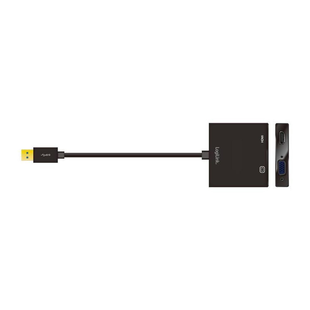 USB 3.0-Adapter USB-A/M zu HDMI-A/F + VGA/F, 1080p, schwarz, 0,15 m