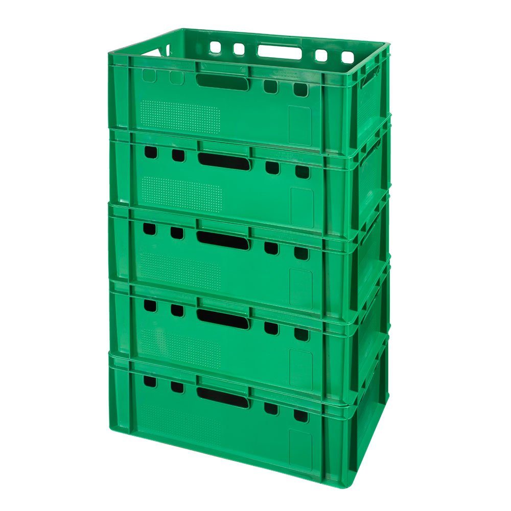 Wenn Sie in der Fleisch- und Wurstwarenindustrie tätig sind, wissen Sie, wie wichtig die richtige Lagerung und der richtige Transport Ihrer Produkte sind. In diesem Zusammenhang gibt es keine bessere Wahl als die Fleischkiste E2. Mit den Abmessungen 600 x 400 x 200 mm und einem Gewicht von nur 2 kg ist diese Kiste nicht nur leicht zu handhaben, sondern lässt sich auch platzsparend stapeln.