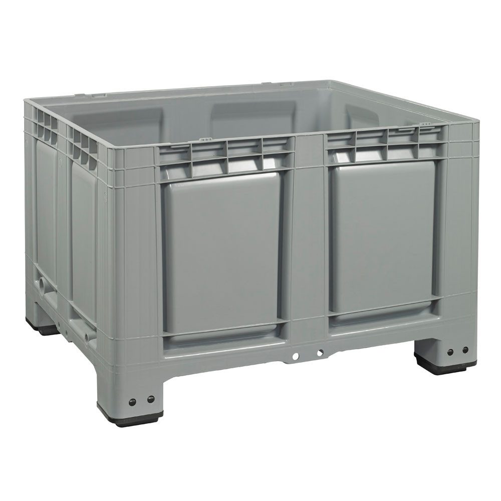 Die robuste Palettenbox aus lebensmittelechtem HDPE bietet 680 Liter Volumen und ist ideal für Lagerung und Transport. Die glatten, geschlossenen Wände und der Boden sorgen für hygienischen Schutz – perfekt für sensible Einsatzbereiche.