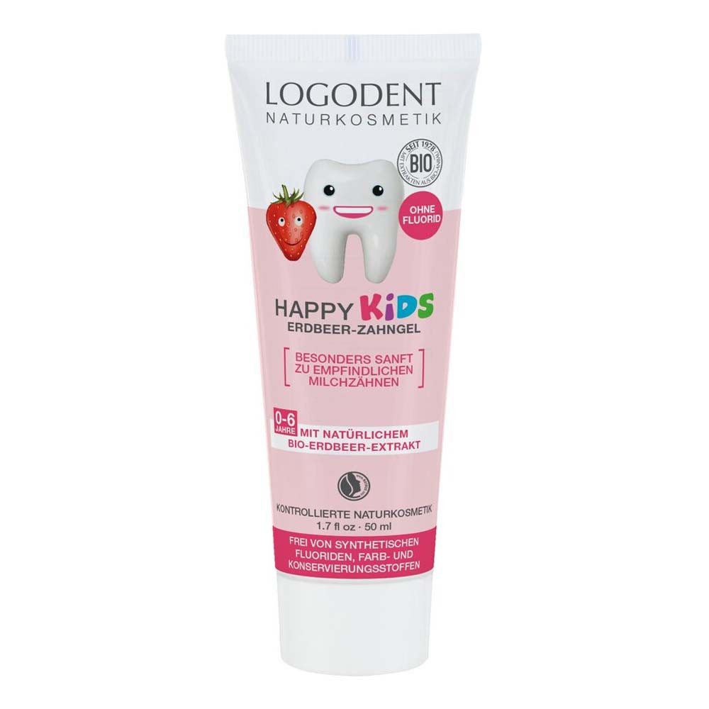 Krokodilstarke und gesunde Kinderzähne mit dem milden HAPPY KIDS Erdbeer Zahngel - schon ab dem ersten Zahn. Für gesunde und starke Milch- und Kinderzähne.