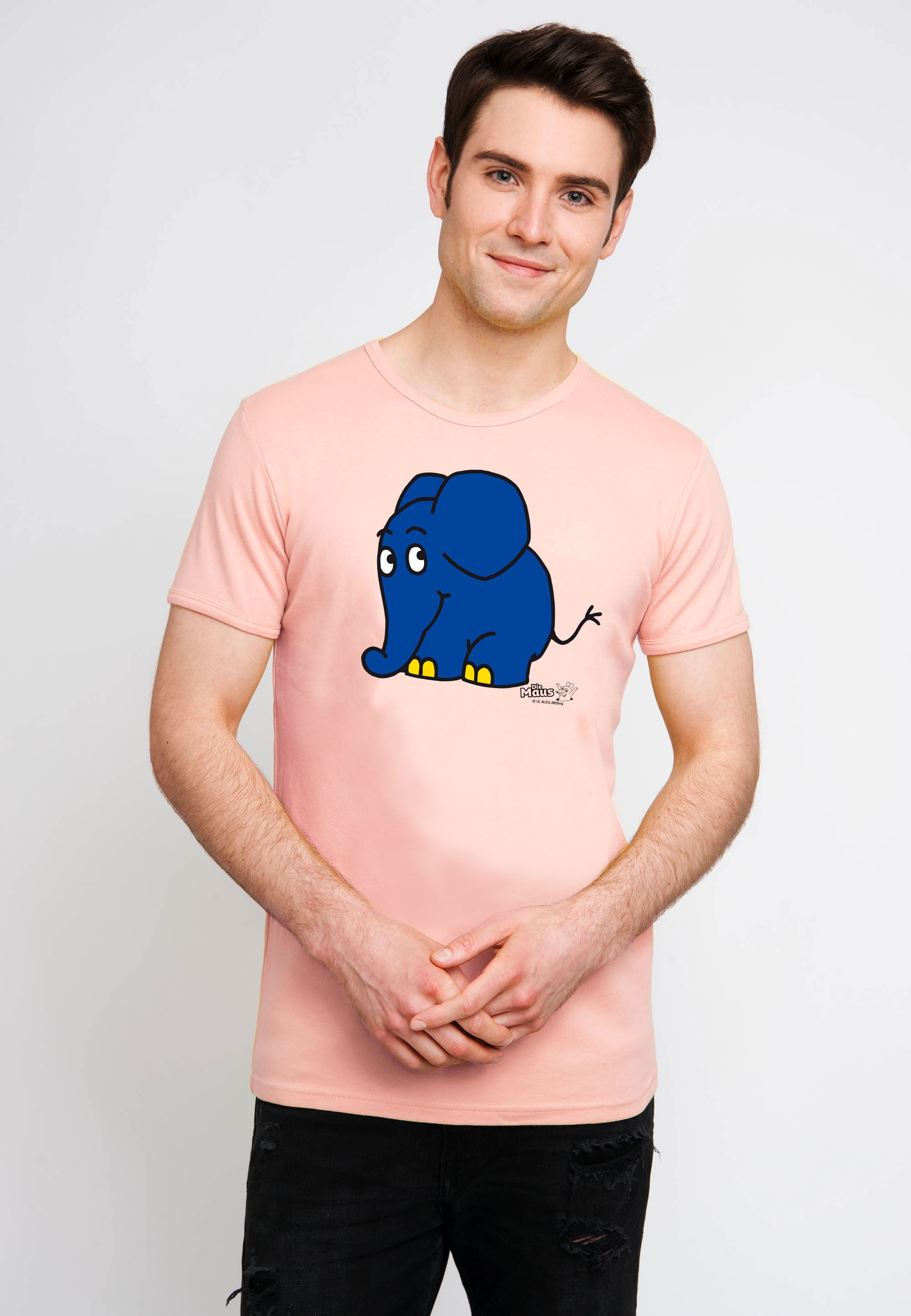 Das bunte Grafik-Shirt "Die Sendung mit der Maus - Elefant" von Logoshirt ist mit dem starken und neugierigen Elefanten bedruckt. Der blaue Elefant mit gelben Zehennägeln erklärte zusammen mit der orangenen Maus bereits Generationen von Kindern ohne Worte die Welt. Auch heute begeistern sie Groß und Klein mit kurzen Lach- und Sachgeschichten. Tack tack. Schnüff schnüff schnüff. Klack klack. Törööö! Das T-Shirt ist ein echtes "Must Have" für Die Sendung mit der Maus-Fans. Das kurzärmlige Oberteil ist schmal geschnitten und lässt sich sehr gut kombinieren. Wegen des hochwertigen und langlebigen Siebdruckes im Retro-Look wirkt das T-Shirt wie ein Original aus den 60ern und ist ein echter Hingucker. Aufgrund der Einlaufvorbehandlung bleibt das Slim Fit-Shirt auch nach mehreren Wäschen formstabil. Das T-Shirt mit dem hochwertigen Siebdruck ist aus 100% Baumwolle hergestellt. Es handelt sich um eine besonders hohe Materialqualität (230 g/m2). Ein Modell, das einfach immer passt! Was will man mehr? Einfach an warmen Sommerabenden mit Shorts kombinieren oder beim Ausflug in die Stadt lässig mit Chino oder Jeans tragen. So ist schnell und einfach für jede Gelegenheit das richtige Outfit gefunden. Logoshirt steht für lizenziertes und authentisches Originaldesign.