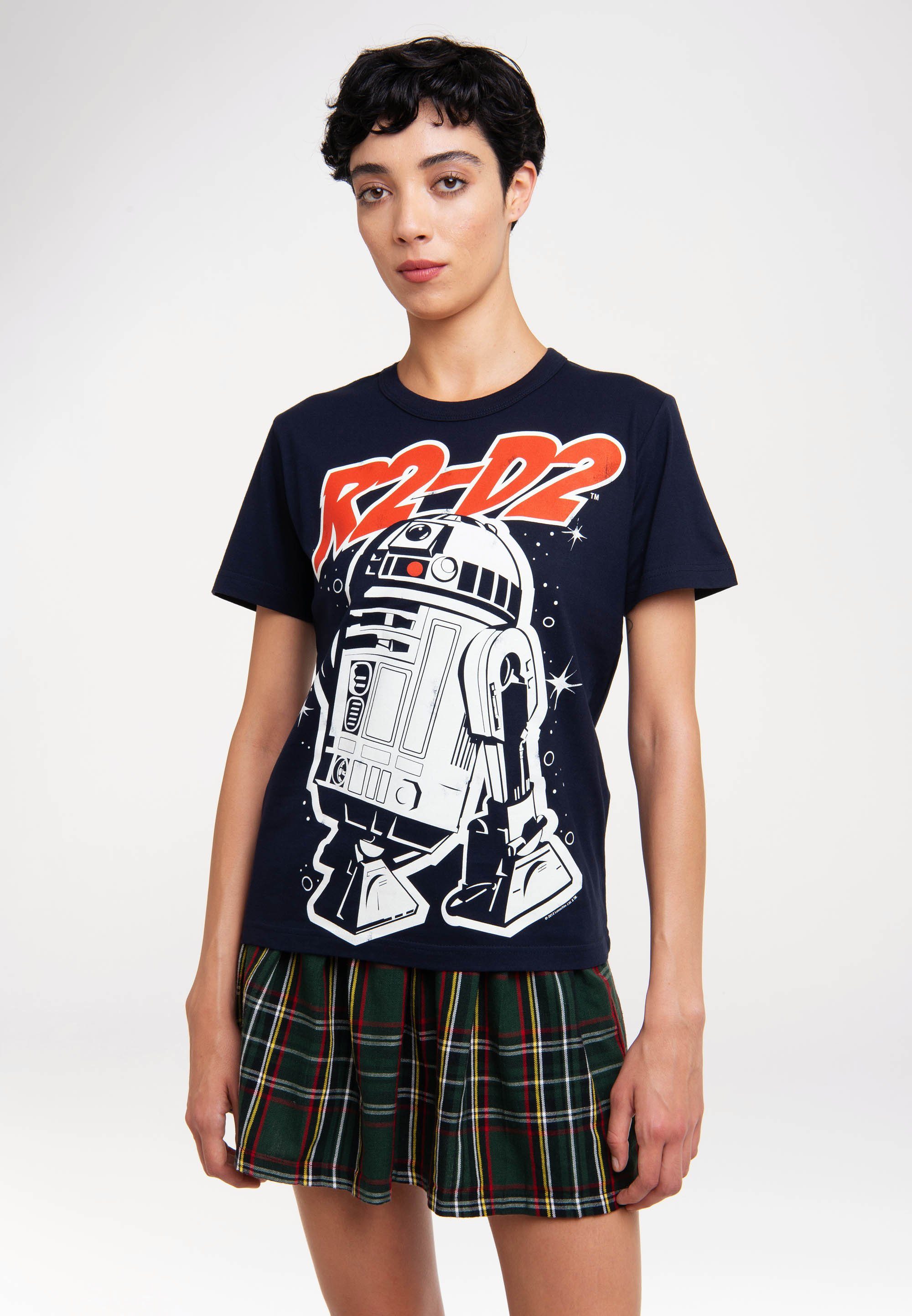 Das coole Grafik-Shirt "Star Wars - R2-D2" von Logoshirt ist mit dem berühmten loyalen und einfallsreichen Droiden R2-D2 bedruckt. Wo der Roboter Menschkontakter C-3PO auftaucht, ist sein kleiner Astromech Kumpel R2-D2 nicht weit entfernt. Und wer behauptet, Roboter haben keine Persönlichkeit, wird hier eines Besseren belehrt. Das T-Shirt ist ein echtes "Must Have" für Star Wars-Fans. Das kurzärmlige Oberteil ist gerade geschnitten und lässt sich sehr gut kombinieren. Wegen des hochwertigen und langlebigen Siebdrucks im Retro-Look wirkt das Grafik-Shirt wie ein Original aus den 60ern und ist ein echter Hingucker. Der speziell erzeugte Aufdruck im Vintage-Stil lässt den Druck leicht abgenutzt aussehen, beeinträchtigt jedoch keinesfalls die Qualität. Vielmehr wird hiermit der außergewöhnliche Charakter und der hohe Gestaltungsgrad dieses Produktes betont. Aufgrund der Einlaufvorbehandlung bleibt das Easy Fit-Shirt auch nach mehreren Wäschen formstabil. Das T-Shirt mit dem coolen Print ist aus 100% hochwertiger Baumwolle hergestellt. Logoshirt steht für lizenziertes und authentisches Originaldesign.