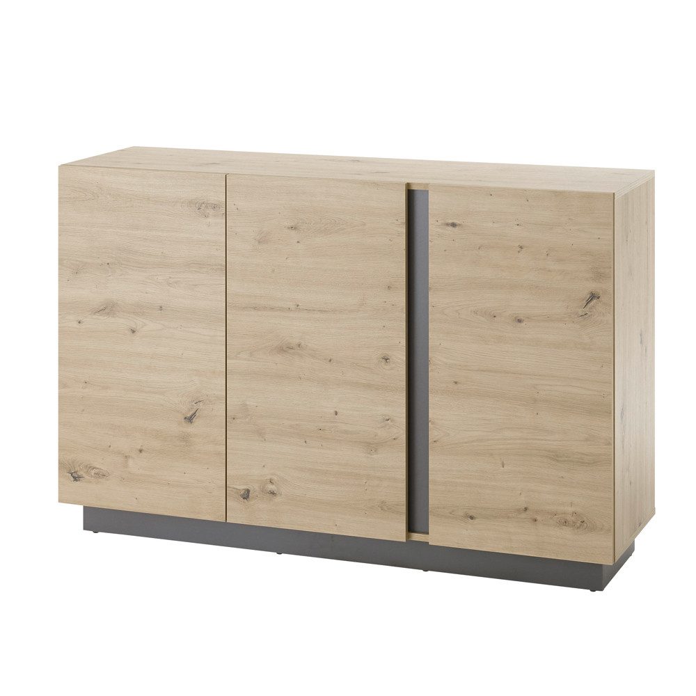 Die Serie CARDIFF-61 bringt ein modernes Ambiente in dein Wohnzimmer. Die Absetzungen in Graphit grau stehen im Kontrast zur warmen Eiche und setzen einen schönen Akzent.