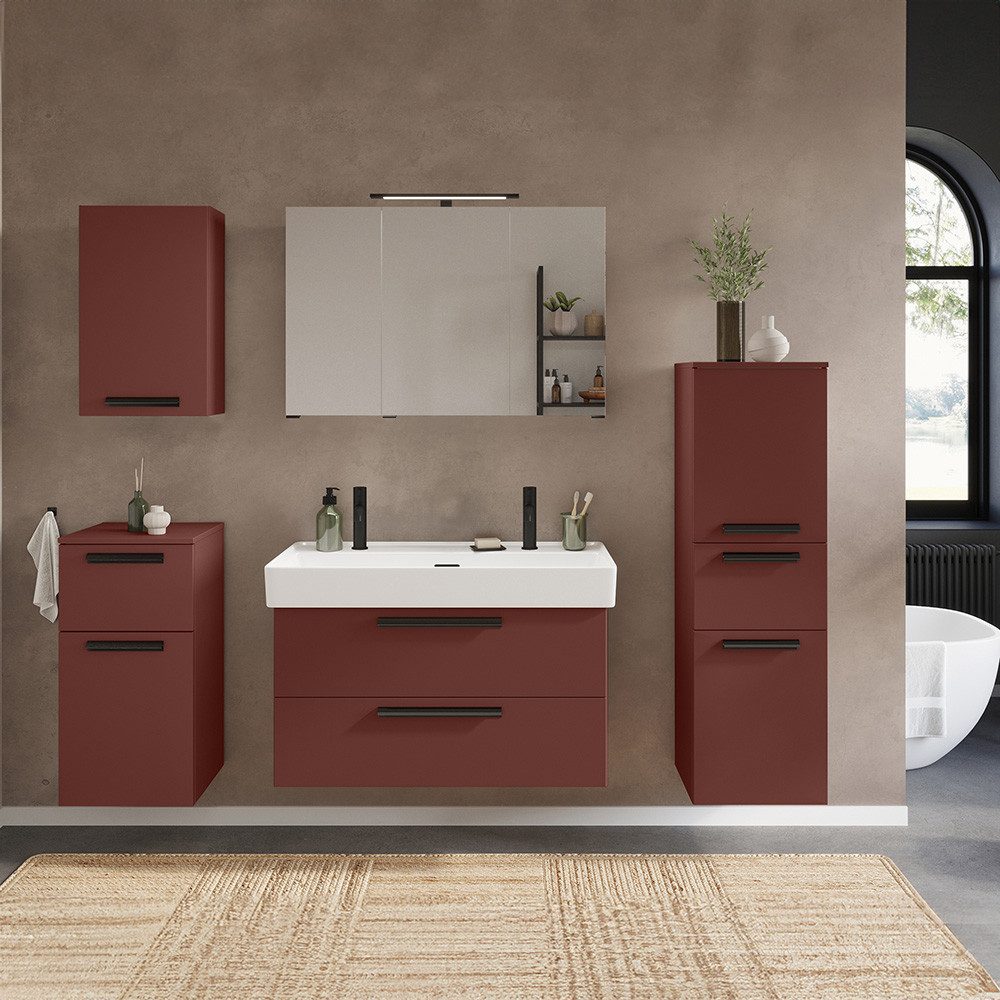 Erhältlich in Rot, Kaschmir oder Schwarz – für ein rundum durchdachtes Badezimmer.