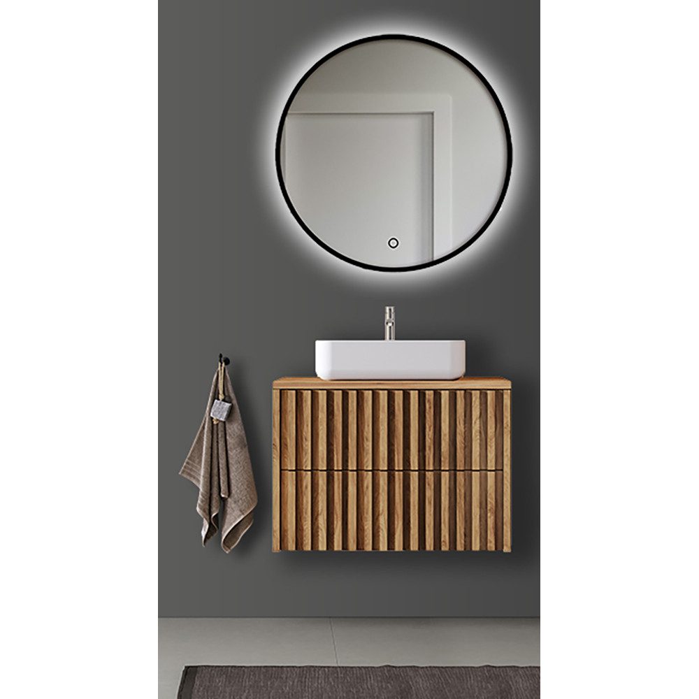 Willkommen zur DESIO-107 Badmöbelserie – deine Einladung zu zeitloser Eleganz und raffiniertem Design. Der warme Farbton in Eiche verleiht deinem Badezimmer eine natürliche, einladende Atmosphäre. Die Lamellenfronten sind das Highlight dieser Serie, sie verleihen den Möbeln eine interessante und einzigartige Textur. Unser griffloses Design sorgt nicht nur für ein modernes Erscheinungsbild, sondern auch für eine mühelose Benutzung. Die Schränke sind mit der Softclose-Funktion ausgestattet, was sanftes Спрятать garantiert und eine ruhige und entspannte Atmosphäre in deinem Badezimmer schafft.