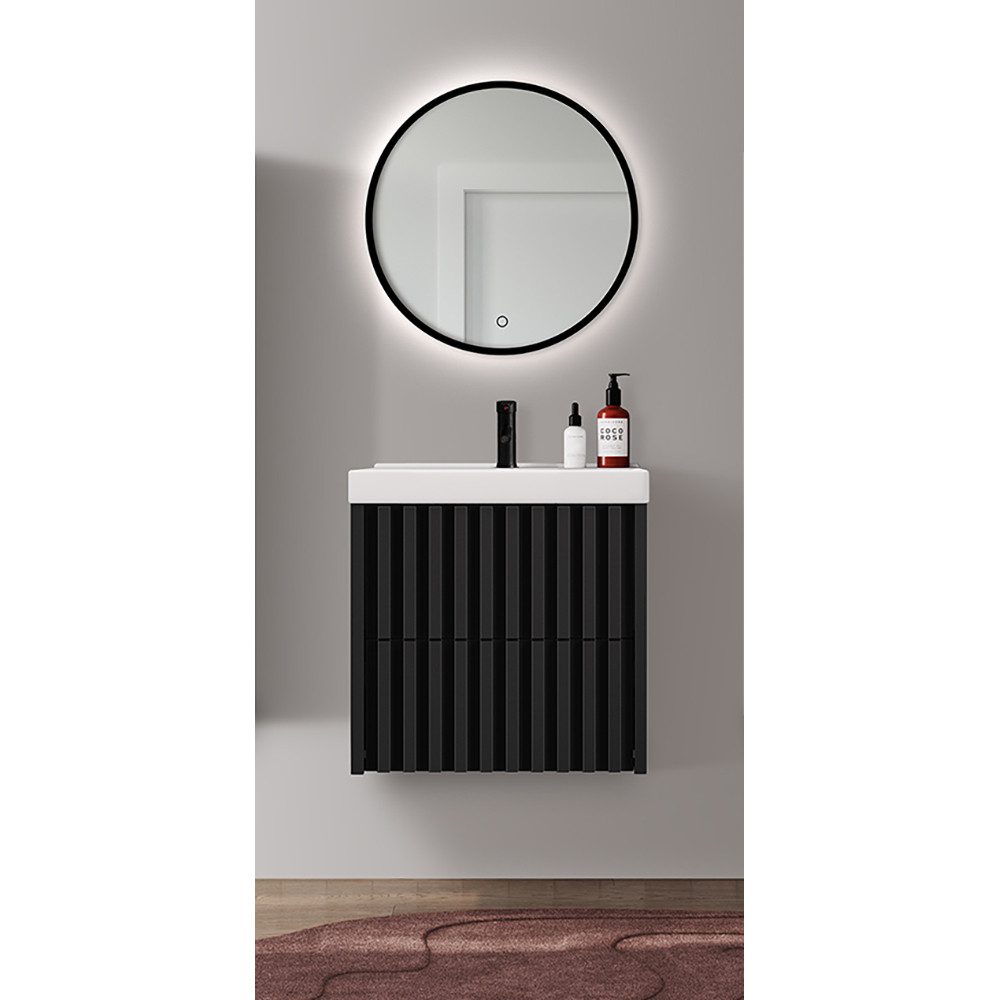 Entdecken Sie unsere moderne Badmöbel Serie NANTES-107 mit außergewöhnlichen Lamellenfronten in zeitlosem Schwarz. Eine perfekte Kombination aus Funktionalität und Ästhetik, um Ihrem Badezimmer einen Hauch von Luxus und Stil zu verleihen. Die geräumigen Schränke bieten jede Menge Stauraum, so dass man alle wichtigen Dinge immer griffbereit hat. Für ein Plus an Komfort sorgt das Softclose System, das für ein geräuscharmes Спрятать der Türen und Schubladen sorgt.