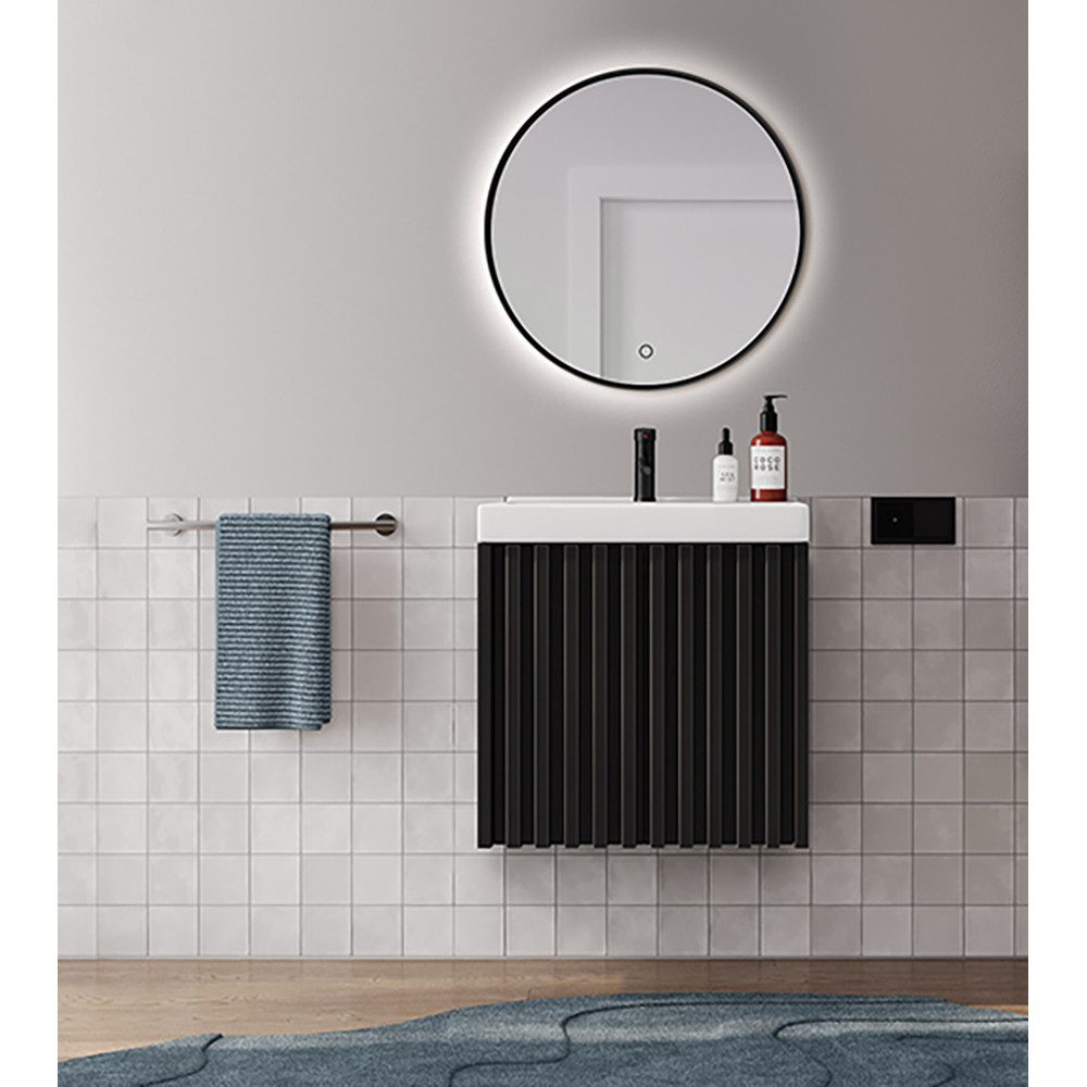 Entdecken Sie unsere moderne Badmöbel Serie NANTES-107 mit außergewöhnlichen Lamellenfronten in zeitlosem Schwarz. Eine perfekte Kombination aus Funktionalität und Ästhetik, um Ihrem Badezimmer einen Hauch von Luxus und Stil zu verleihen. Die geräumigen Schränke bieten jede Menge Stauraum, so dass man alle wichtigen Dinge immer griffbereit hat. Für ein Plus an Komfort sorgt das Softclose System, das für ein geräuscharmes Спрятать der Türen und Schubladen sorgt.