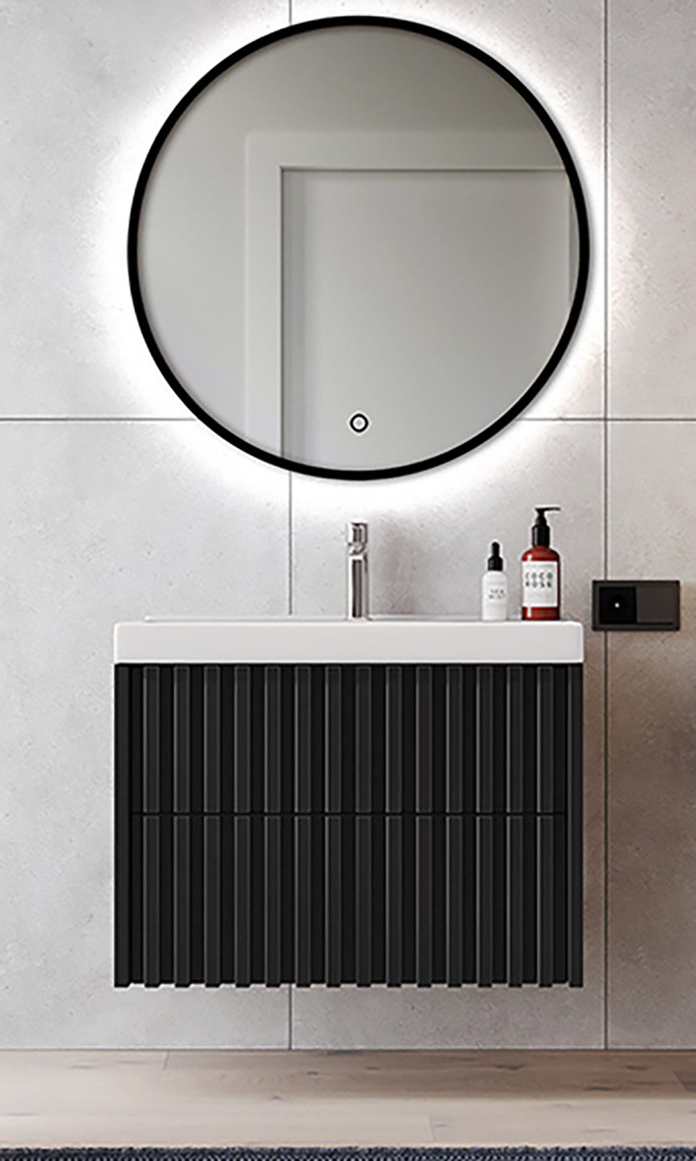 Entdecken Sie unsere moderne Badmöbel Serie NANTES-107 mit außergewöhnlichen Lamellenfronten in zeitlosem Schwarz. Eine perfekte Kombination aus Funktionalität und Ästhetik, um Ihrem Badezimmer einen Hauch von Luxus und Stil zu verleihen. Die geräumigen Schränke bieten jede Menge Stauraum, so dass man alle wichtigen Dinge immer griffbereit hat. Für ein Plus an Komfort sorgt das Softclose System, das für ein geräuscharmes Спрятать der Türen und Schubladen sorgt.