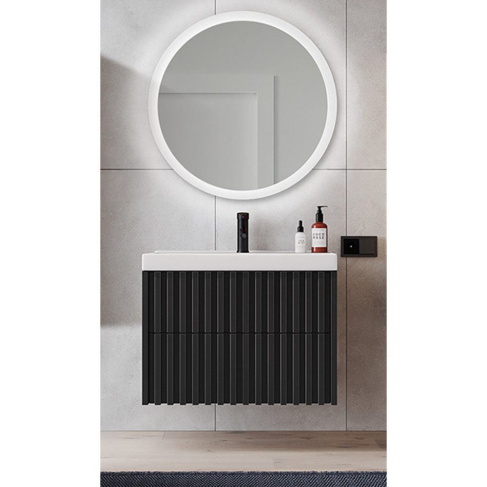 Entdecken Sie unsere moderne Badmöbel Serie NANTES-107 mit außergewöhnlichen Lamellenfronten in zeitlosem Schwarz. Eine perfekte Kombination aus Funktionalität und Ästhetik, um Ihrem Badezimmer einen Hauch von Luxus und Stil zu verleihen. Die geräumigen Schränke bieten jede Menge Stauraum, so dass man alle wichtigen Dinge immer griffbereit hat. Für ein Plus an Komfort sorgt das Softclose System, das für ein geräuscharmes Спрятать der Türen und Schubladen sorgt.