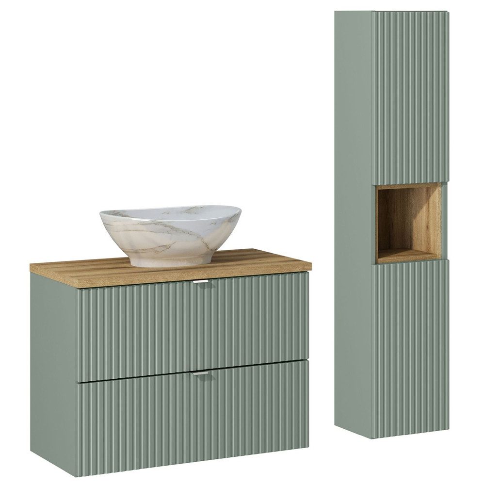 Diese Serie besticht durch ihre klaren, geradlinigen Formen und zeitlose Eleganz, hervorgehoben durch vertikale Rillen an den Fronten, die jedem Stück Tiefe und Charakter verleihen.