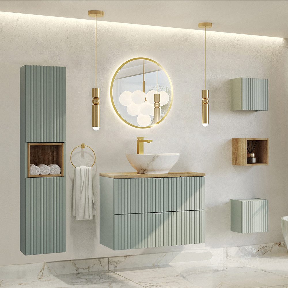 Ihre modulare Bauweise und das reduzierte Tiefenmaß machen sie ideal für kleine Badezimmer, ohne dabei Kompromisse bei Stil oder Funktionalität einzugehen.