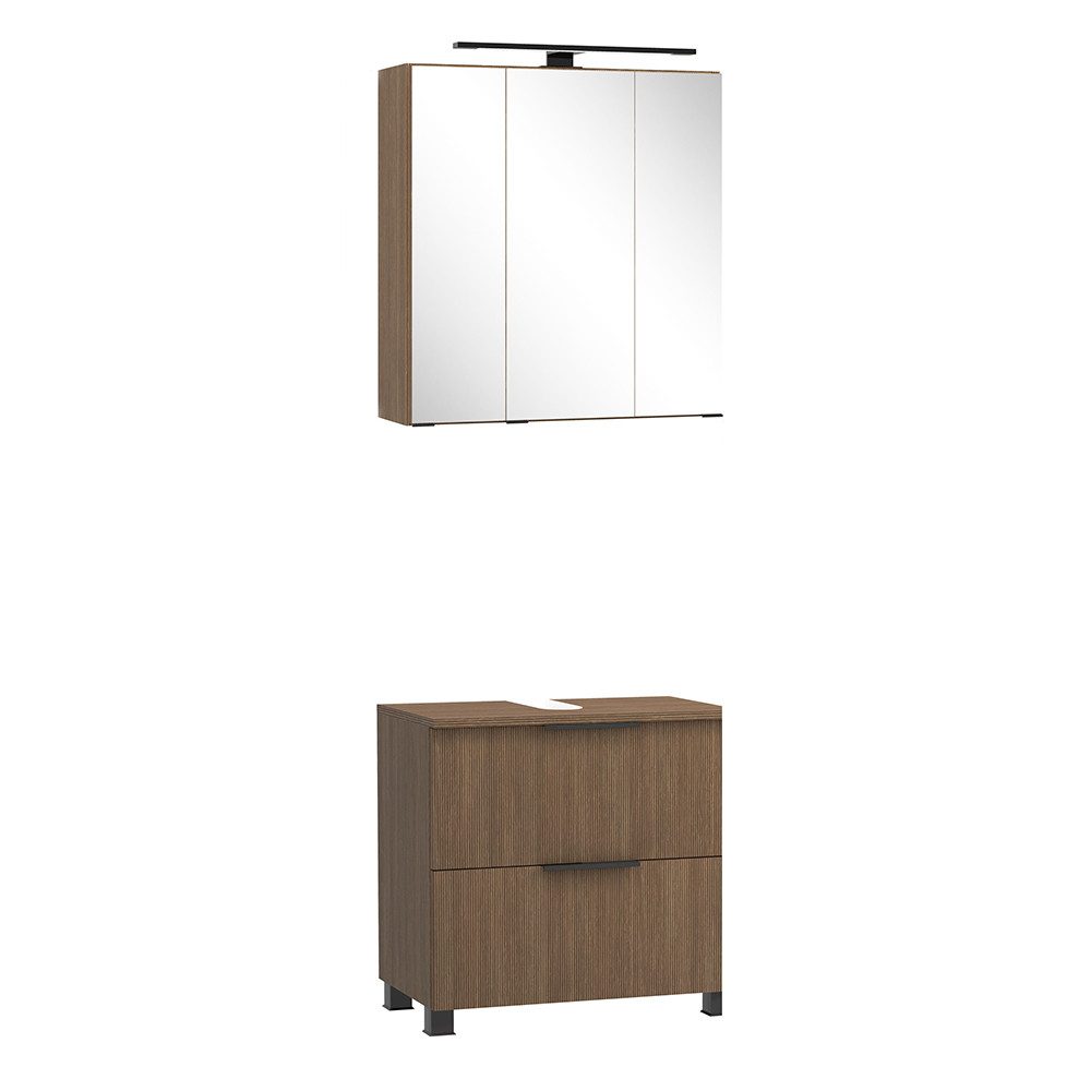 Verwandle dein Badezimmer in eine Oase der Eleganz mit der SORRENT-03 Badmöbelserie. Genieße das ansprechende Design mit Korpus und Front in Cannello Eiche, ergänzt durch mattschwarze Metallgriffe. Die fühlbare Strukturoberfläche verleiht jedem Stück Charakter, während gedämpfte Scharniere und Softclose-Auszüge für einen sanften Gebrauch sorgen. Mit Optionen für hängende oder stehende Montage und dem umfangreichen Typenplan, passt sich die Serie flexibel an jeden Raum an. Qualität „Made in Germany“ garantiert Langlebigkeit und hochwertige Verarbeitung.
