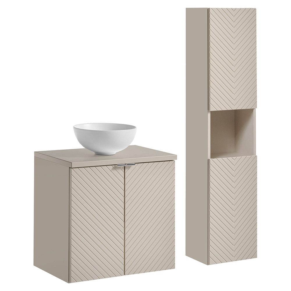 Dieses Badmöbel Set in kaschmir vereint modernes Design und praktischen Stauraum in deinem Bad.