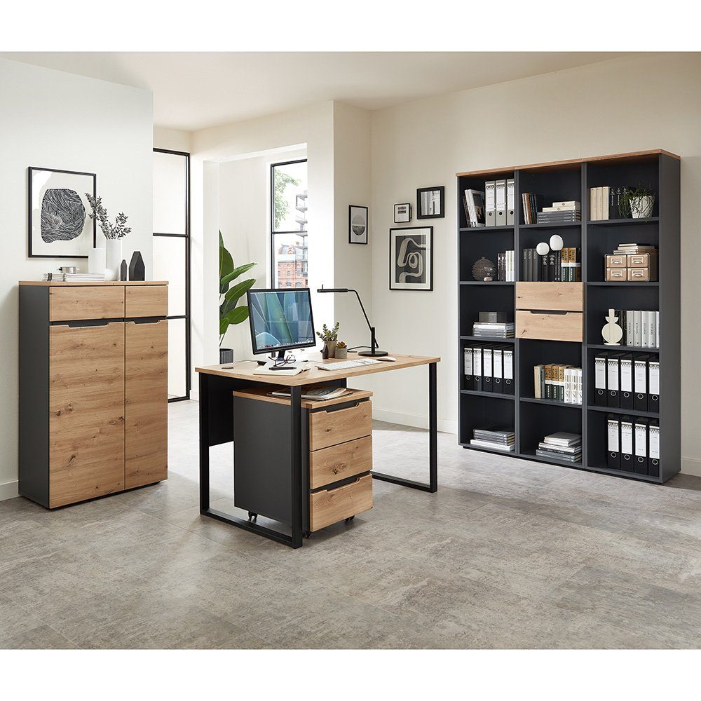 Entdecke unsere hochwertigen Büromöbel der Serie MANRESA-36 in Artisan Eiche Nb. mit Graphit – eine perfekte Symbiose aus zeitgemäßem Design und funktionaler Eleganz.