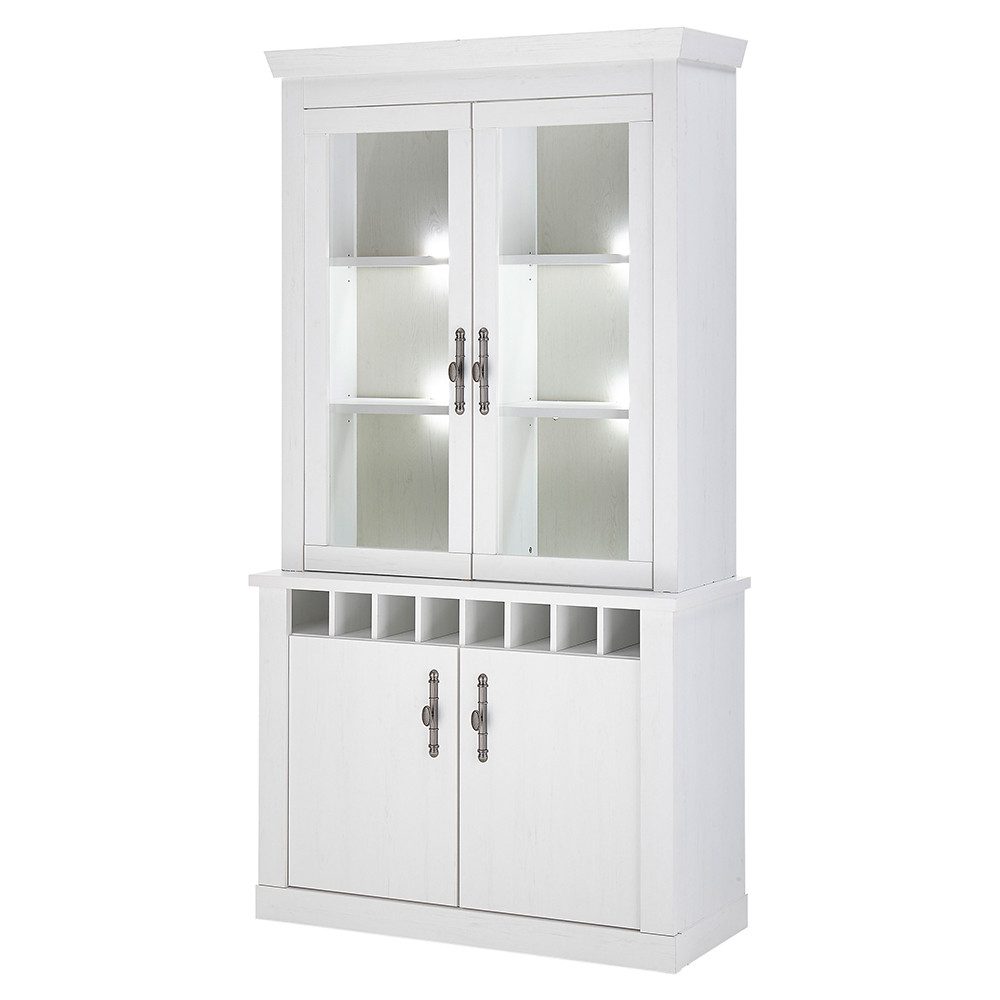 Die beiden Glasrahmentüren setzen Deine Lieblingsstücke stilvoll in Szene, während Flaschenfächer, Holztüren und verstellbare Böden viel Stauraum bieten. Das helle Pinie-Dekor bringt Leichtigkeit in Deinen Wohn- oder Essbereich, die markanten Metallgriffe setzen charmante Akzente.
