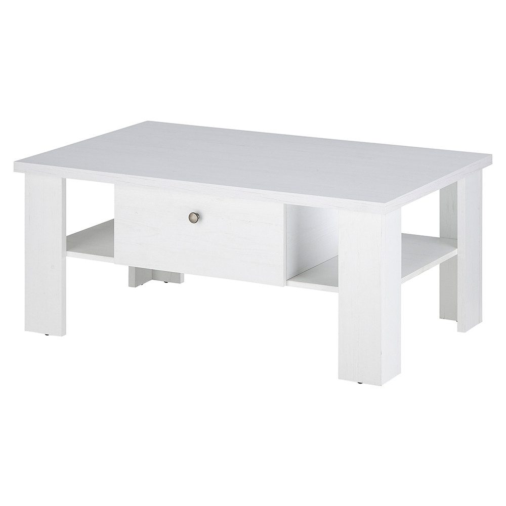 Zwei Schubladen bieten Platz für alles, was Du schnell zur Hand haben möchtest – aber nicht sehen willst. Das helle Pinie-Dekor sorgt für nordische Leichtigkeit, die rustikalen Griffe unterstreichen den wohnlichen Charakter. Ein Tisch, der mehr kann, als nur gut aussehen.