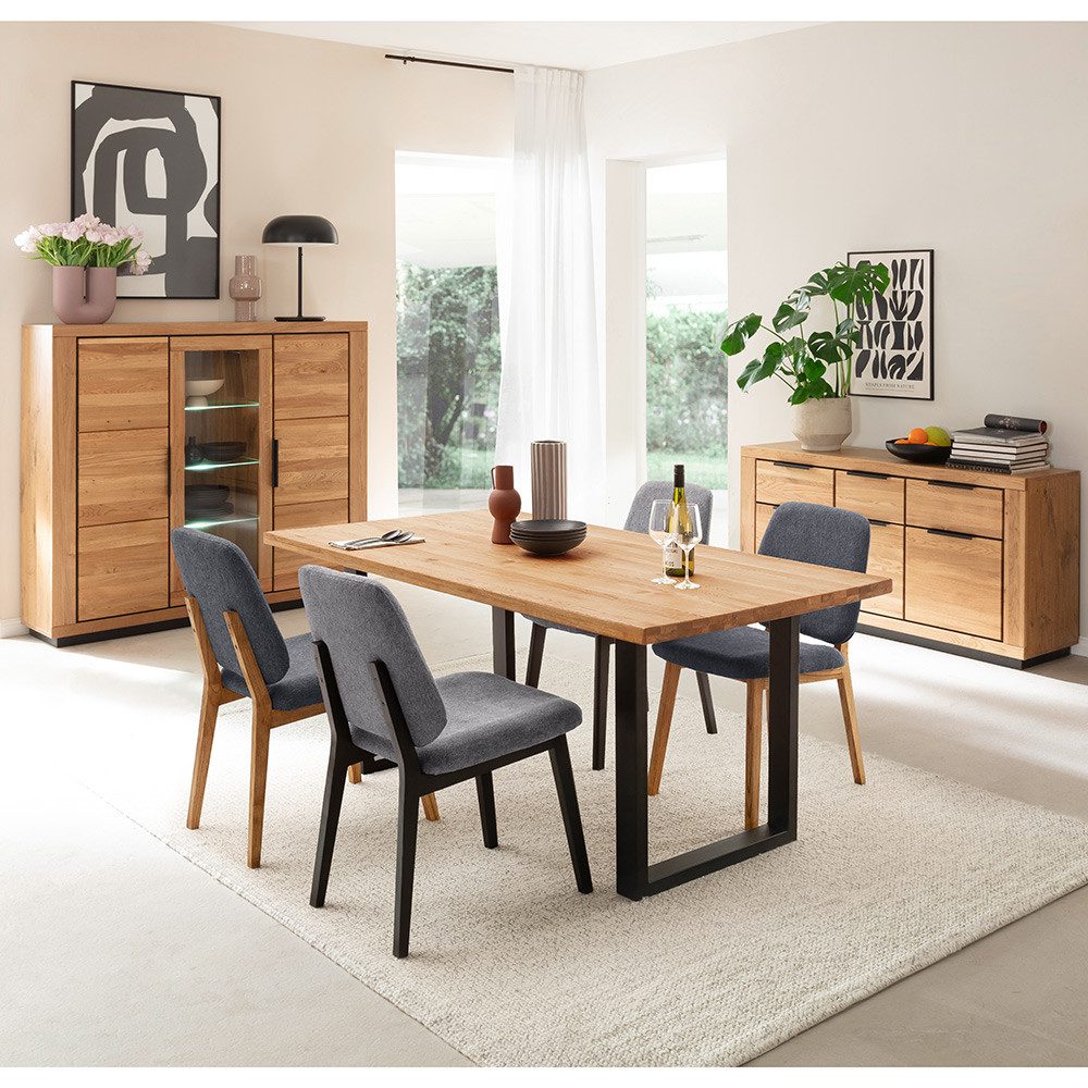 Bringe natürlichen Charme in dein Zuhause mit unserer Wohn- und Esszimmermöbelserie in edler Wildeiche.