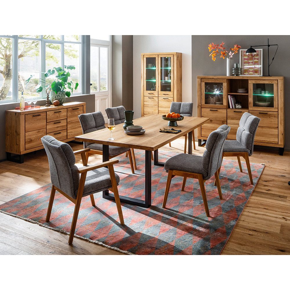 Dieses Set bringt alles mit, was ein Esszimmer zum Lieblingsort macht: Stauraum, Ausstrahlung und einen Tisch, der Platz für Gemeinschaft schafft. Ob Alltag oder Feiertag – mit dieser Kombination aus Sideboard, Vitrine, Highboard und Esstisch bist du immer gut eingerichtet.