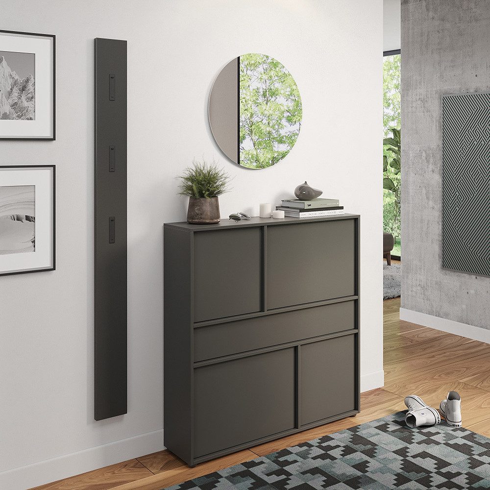 Spar-Set, 3-St., Garderobenpaneel Spiegel Schuhschrank), Dielenmöbel in graphit mit Spiegel, geringe Tiefe (25 cm