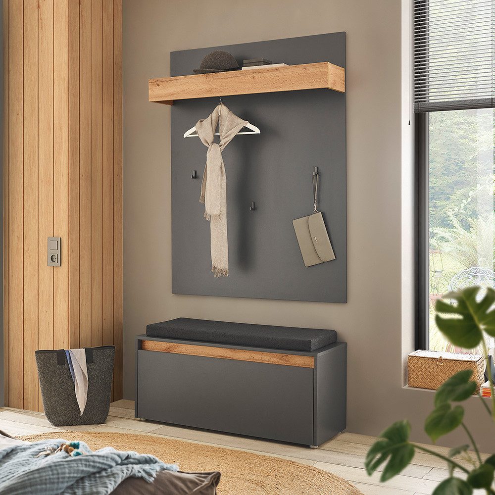 Du hast die Wahl zwischen zwei ansprechenden Вариантыn: edles Anthrazit mit Applikationen in warmer Wotan Eiche Nb. oder frisches Weiß, ebenfalls kombiniert mit den natürlichen Akzenten der Wotan Eiche Nb. Diese Möbel bieten nicht nur praktischen Stauraum für Jacken, Schuhe und Accessoires, sondern setzen auch optische Highlights in deinem Flur. Egal, ob du einen modernen, minimalistischen Look bevorzugst oder eine warme, einladende Atmosphäre schaffen möchtest – unsere Garderobenmöbel vereinen Design und Funktionalität perfekt.