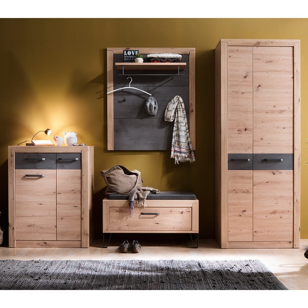 Der erste Eindruck zählt: Verleihe mit unserer Garderobenmöbel-Serie in Balkeneiche Nb. deinem Eingangsbereich ein Flair, das moderne Wohnlichkeit ausstrahlt - inklusive praktischem Stauraum. Die natürliche Holzoptik sorgt für eine warme und einladende Atmosphäre. Unterstrichen wird das gradlinige Design durch Möbelgriffe aus Metall sowie Absetzungen in grau, die beim Betreten deines Zuhauses für einen Blickfang sorgen.