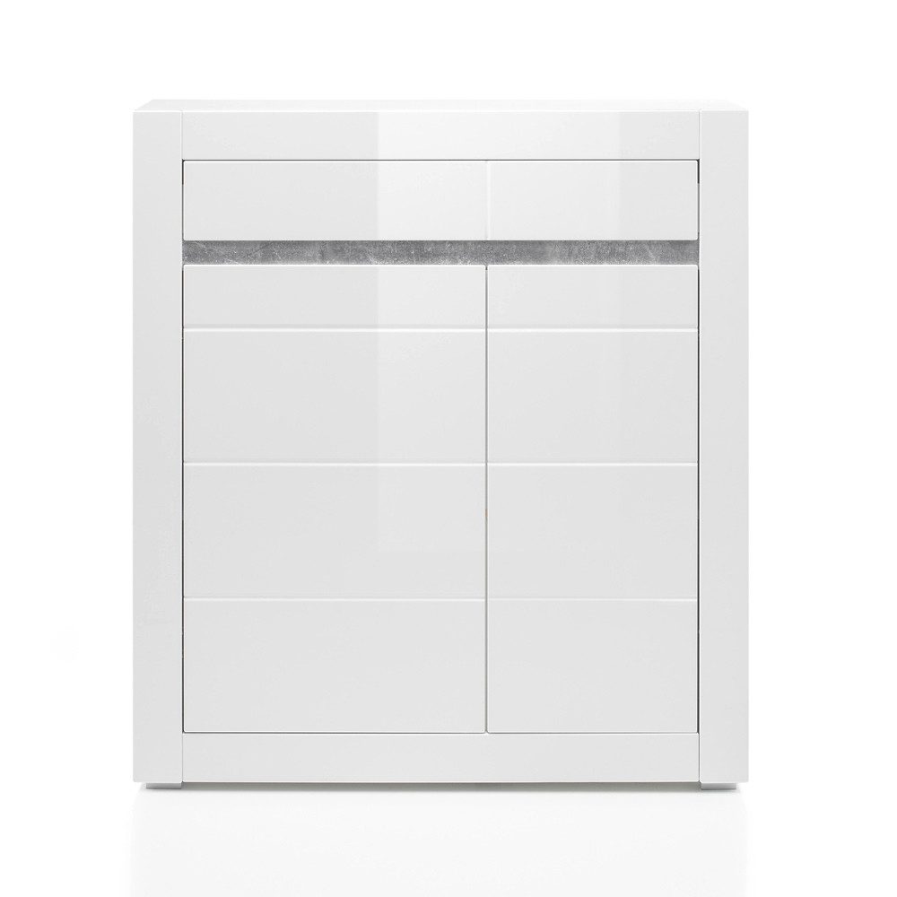 Mit dieser ultra modernen Wohnzimmer-Möbel-Serie COGO-61 mit Fronten in weiß Hochglanz und einmaligen Griffmulden / Zierleisten in Betonoptik liegen Sie im Trend und verleihen Ihrer Wohnung ein elegantes Erscheinungsbild. Die Oberflächen sind pflegeleicht, die Möbel bieten viel Stauraum und Türen als auch Schubladen sind mit Soft-Close-System ausgestattet.