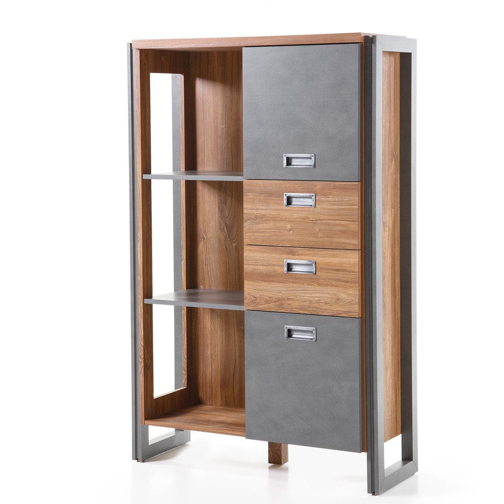 Die Wohn-, Schlaf- und Garderobenmöbel Serie DALLAS-61 präsentiert sich im neuen Industrial-Design: up to date. Die Optik wurde mit viel Liebe zum Detail dem industriellen Erscheinungsbild angepasst. Der Look im Stirling Oak Nb. Dekor mit den abgesetzten Elementen in Matera Anthrazit wirkt nüchtern aber nicht kalt.