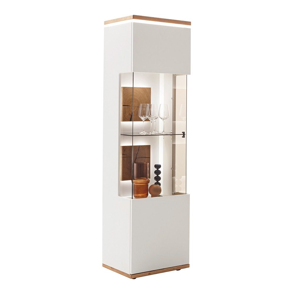 Die Serie kombiniert strahlendes weiß mit Eiche Nachbildung und veredelt jedes Möbelstück mit Hirnholz-Applikationen aus massiver Wildeiche, die sorgfältig geölt wurden.