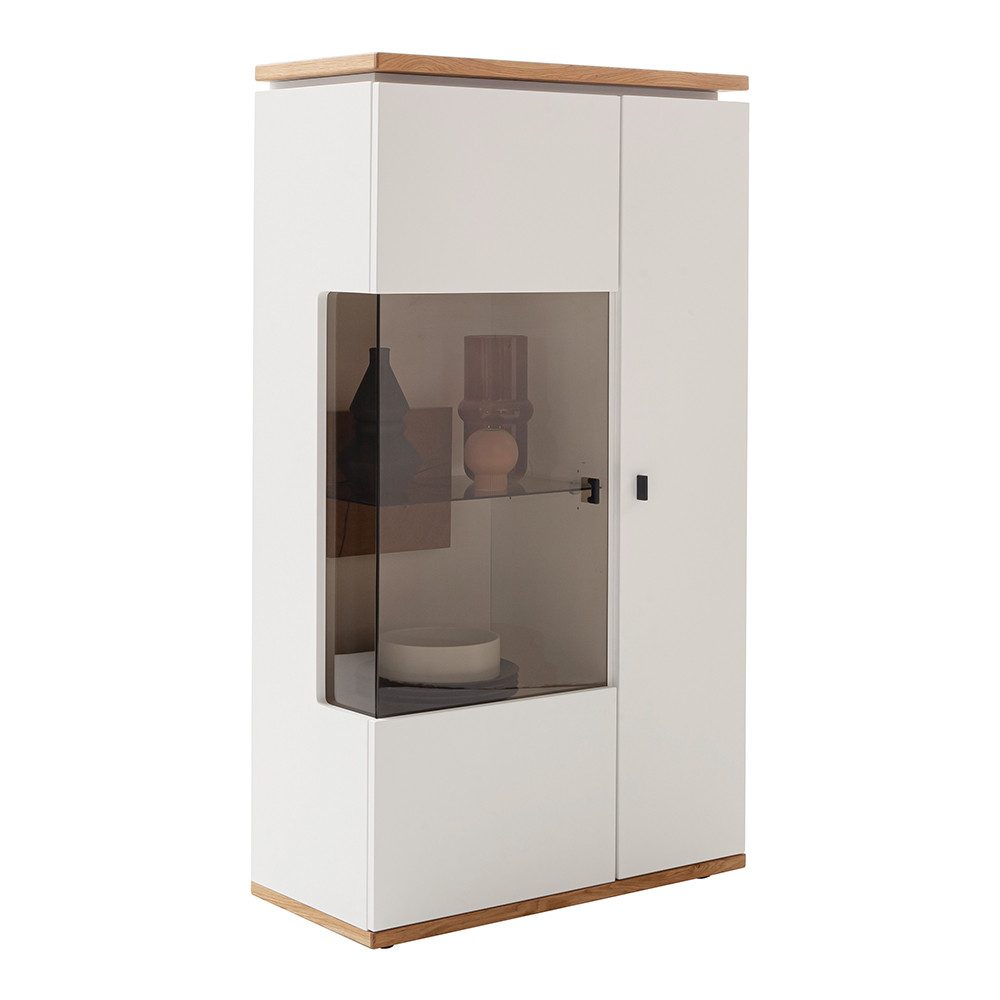 Die Serie kombiniert strahlendes weiß mit Eiche Nachbildung und veredelt jedes Möbelstück mit Hirnholz-Applikationen aus massiver Wildeiche, die sorgfältig geölt wurden.