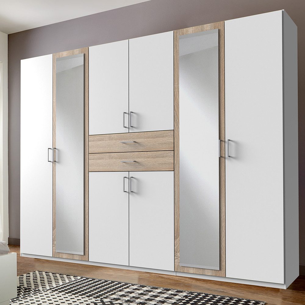 Gestalte dein Schlafzimmer neu mit unseren eleganten Kleiderschränken, erhältlich in zwei praktischen Breiten. Jeder Drehtürenschrank bietet neben Spiegeln auch zwei Kleiderstangen und Schubkästen in angenehmer Höhe, die für Ordnung und Übersichtlichkeit sorgen. Unsere Schränke sind individuell kombinierbar und passen sich deinem Raum und Stil perfekt an. Mache jetzt den ersten Schritt zu einem organisierten und stilvollen Schlafbereich – kaufe noch heute!