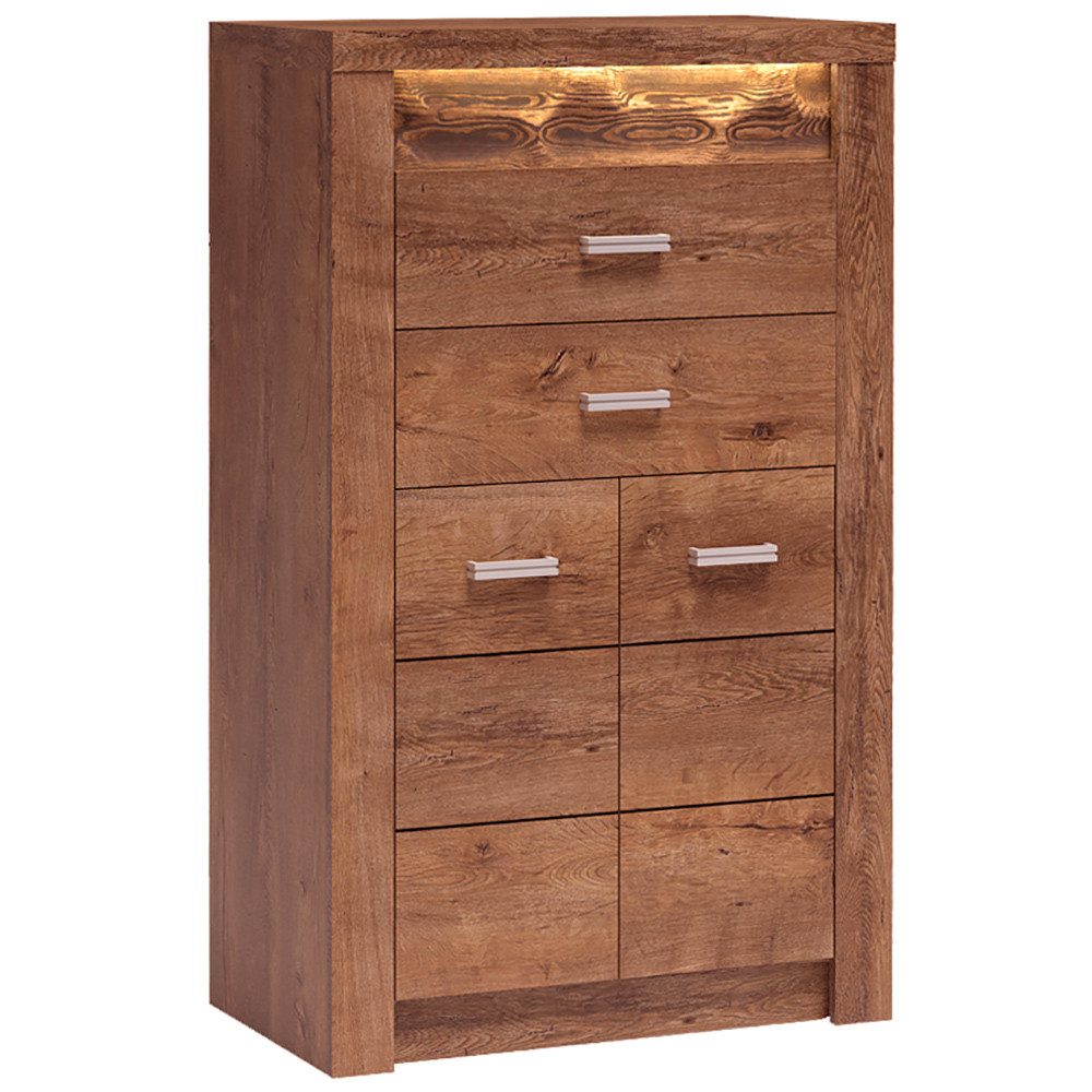 Diese hochwertige Kollektion besteht aus laminierten Spanplatten und ist mit robusten ABS-Kanten versehen, um maximale Langlebigkeit zu gewährleisten. Die spürbare Holzstruktur verleiht den Möbeln eine natürliche und warme Haptik, die deinem Raum eine einladende Atmosphäre verleiht.