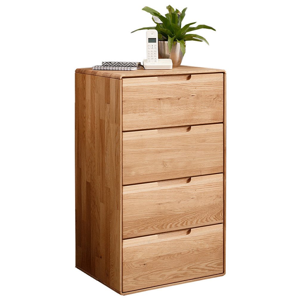 Klare Form, edles Material – diese hohe Kommode aus massiver, geölter Wildeiche verbindet Stauraum mit Stil. Vier geräumige Schubladen mit gefrästen Griffmulden bieten dir Platz für Kleidung, Dokumente oder Kleinkram. Die gerillten Griffmulden sorgen für eine ruhige Front, während die geölte Oberfläche die natürliche Maserung wunderschön zur Geltung bringt. Ein Einzelstück mit Charakter, das sich in moderne wie wohnliche Räume perfekt einfügt.
