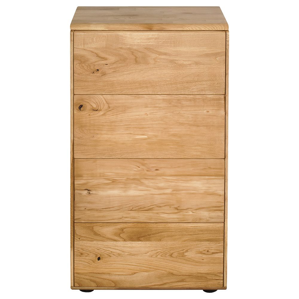 Massives Holz, klare Linien und ein Hauch Raffinesse – diese Kommode verbindet modernes Design mit natürlicher Ausstrahlung. Vier Schubladen mit grifflosem Push-to-Open-System lassen sich mühelos durch Antippen öffnen. Die geölte Wildeiche bringt ihre ganze Schönheit zur Geltung: warm, lebendig und zeitlos. Abgerundete Kanten sorgen für eine ruhige Silhouette. Ob im Schlafzimmer, Flur oder Wohnbereich – dieses Möbelstück überzeugt überall mit Funktion, Eleganz und echtem Charakter.