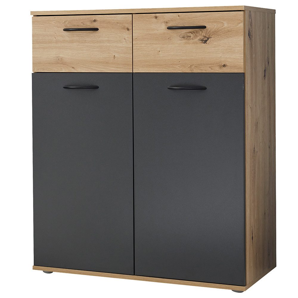 Stauraum kann so stylisch sein! Diese Kommode bringt nicht nur Ordnung in dein Jugendzimmer, sondern auch einen modernen Look. Die Kombination aus warmer Artisan Eiche Nachbildung und tiefem Graphit wirkt zeitlos und cool zugleich. Zwei Schubladen bieten Platz für Kleinigkeiten, während das geräumige, zweitürige Fach Bücher, Deko oder Alltagsgegenstände aufnimmt. Die eleganten Metallgriffe in Anthrazit runden das Design perfekt ab. Ein echtes Lieblingsstück für dein Zuhause!