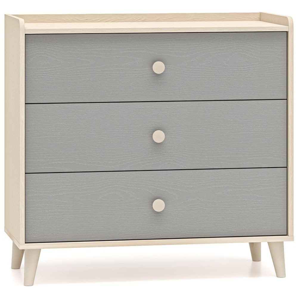 Diese Kommode verbindet zeitlose Назадhaltung mit praktischer Alltagstauglichkeit. Drei gleich große Schubladen bieten Platz für Kleidung, Spielsachen oder Alltagskleinteile – aufgeräumt, sortiert und immer schnell zur Hand. Die Fronten in Grau mit fühlbarer Holzstruktur und der beige Korpus sorgen für ein modernes, ruhiges Gesamtbild. Mit Softclose-Funktion und stoßfesten ABS-Kanten ist die Kommode bestens für Kinderzimmer geeignet.