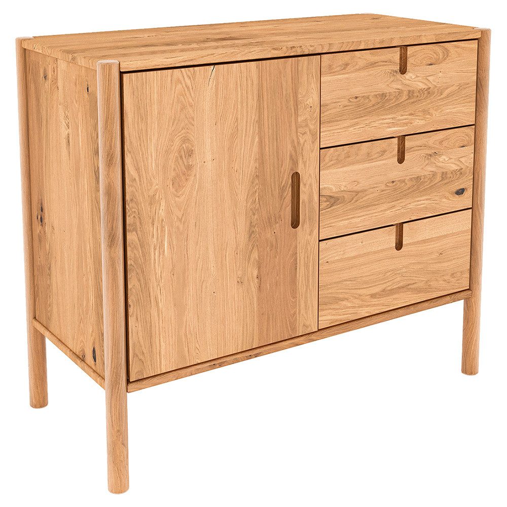 Diese elegante Kommode aus massivem Eichenholz mit geölter Oberfläche vereint funktionalen Stauraum mit modernem Design.