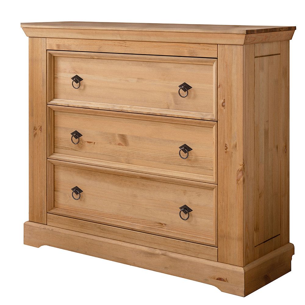 Jedes Möbelstück dieser Serie zeichnet sich durch feine, antik wirkende Metallgriffe aus, die das zeitlose Design unterstreichen. Die robuste Konstruktion aus Massivholz garantiert Stabilität und eine langjährige Nutzung.