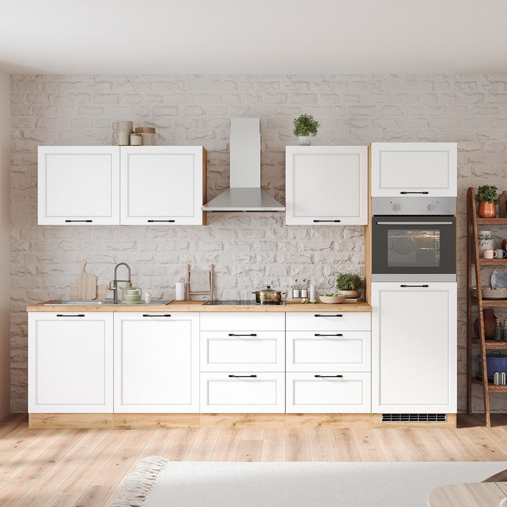 Erlebe die Wärme des modernen Landhausstils mit unserer Küchenmöbelkollektion, die durch ihre klaren Linien und die sanften, matten Farbtöne sowohl Gemütlichkeit als auch zeitgemäße Eleganz ausstrahlt.