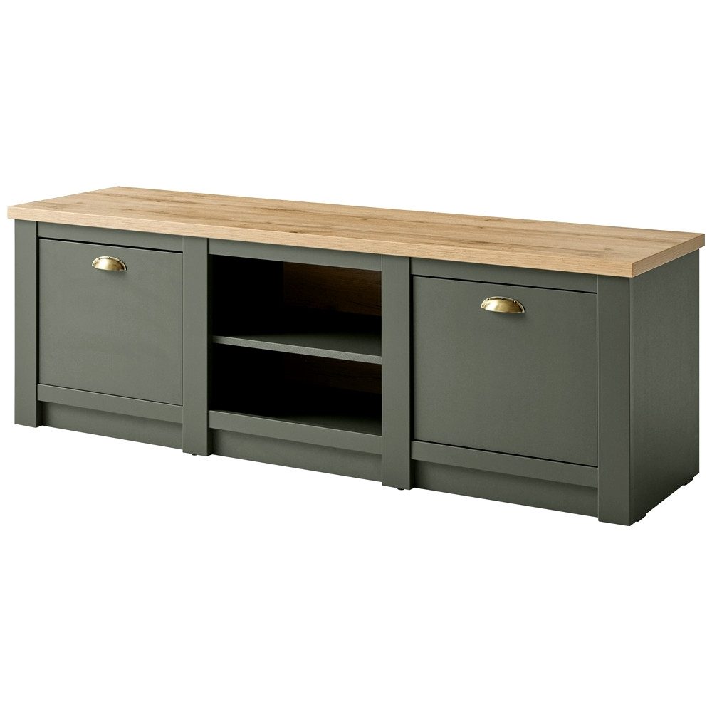 Bestelle jetzt das CINCINNATI-61 TV-Lowboard in dunkelgrün und verleihe deinem Wohnzimmer einen einzigartigen Landhausstil.