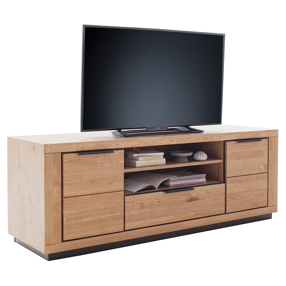 Die massiven, geölten Fronten kombiniert mit einem Korpus in Wildeiche Nachbildung verleihen jedem Raum Wärme und Eleganz. Metallgriffe unterstreichen das zeitlose Design, während die individuell kombinierbaren Elemente dir maximale Flexibilität bieten.