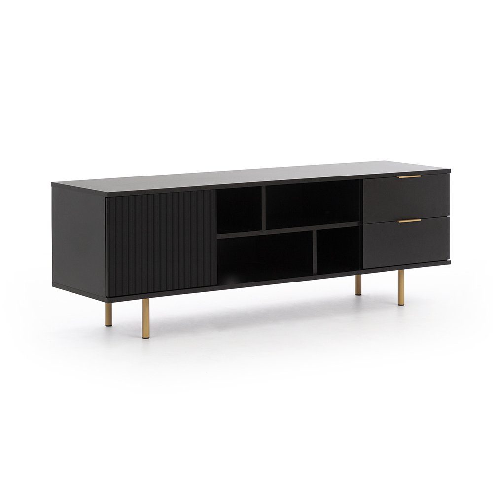 Die Fronten mit stilvoller Rillenoptik und goldfarbenen Metallgriffen und -füßen setzen ein luxuriöses Statement.
